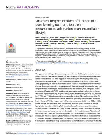Structural insights into loss of function of a pore forming toxin and its role in pneumococcal adaptation to an intracellula.pdf - Other Download (4MB) | Preview |
