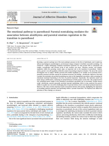 Title: | The emotional pathway to parenthood: Parental mentalizing mediates the association between alexithymia and parental emotion regulation in the transition to parenthood |