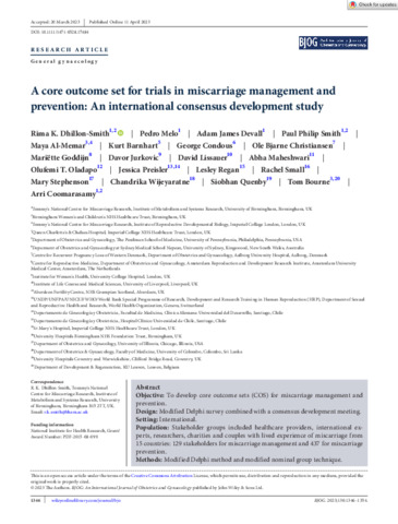 BJOG - 2023 - Dhillon%E2%80%90Smith - A core outcome set for trials in miscarriage management and prevention An international.pdf - Published Version Download (946kB) | Preview |