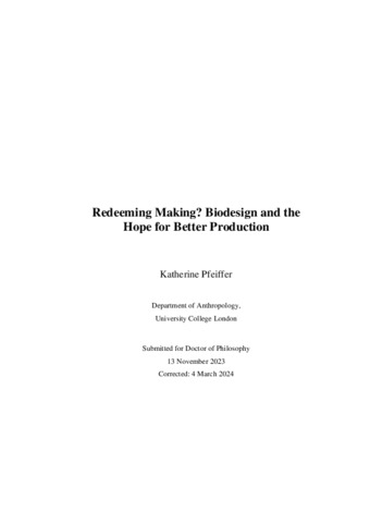 Title: | Redeeming Making? Biodesign and the Hope for Better Production |