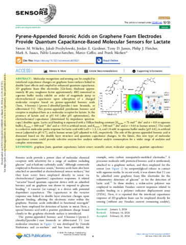 | Title: | Pyrene-Appended Boronic Acids on Graphene Foam Electrodes Provide Quantum Capacitance-Based Molecular Sensors for Lactate |