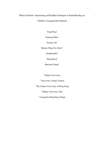 Effects of parents’ questioning and feedback strategies in shared reading on Children’s language development.