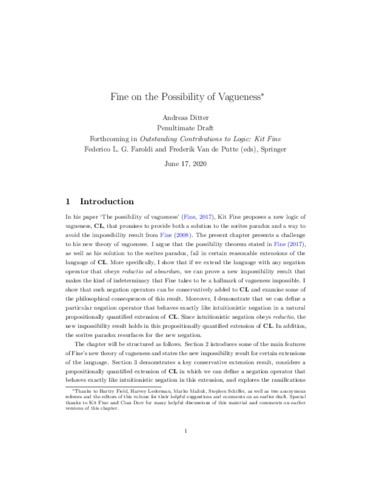 In his paper ‘The possibility of vagueness’ (Fine in Synthese 194(10):3699–3725, 2017), Kit Fine proposes a new logic of vagueness, CL, that promises to provide both a solution to the sorites paradox and a way to avoid the impossibility result from Fine (Philos Perspect 22(1):111–136, 2008). The present paper presents a challenge to his new theory of vagueness. I argue that the possibility theorem stated in Fine (Synthese 194(10):3699–3725, 2017), as well as his solution to the sorites paradox, fail in certain reasonable extensions of the language of CL. More specifically, I show that if we extend the language with any negation operator that obeys reductio ad absurdum, we can prove a new impossibility result that makes the kind of indeterminacy that Fine takes to be a hallmark of vagueness impossible. I show that such negation operators can be conservatively added to CL and examine some of the philosophical consequences of this result. Moreover, I demonstrate that we can define a particular negation operator that behaves exactly like intuitionistic negation in a natural and unobjectionable propositionally quantified extension of CL. Since intuitionistic negation obeys reductio, the new impossibility result holds in this propositionally quantified extension of CL. In addition, the sorites paradox resurfaces for the new negation.