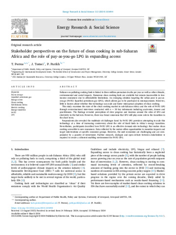 Title: | Stakeholder perspectives on the future of clean cooking in sub-Saharan Africa and the role of pay-as-you-go LPG in expanding access |