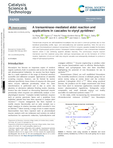 A transaminase-mediated aldol reaction and applications in cascades to styryl pyridines.