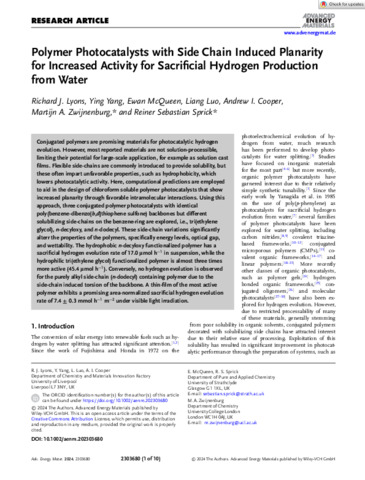 Advanced Energy Materials - 2024 - Lyons - Polymer Photocatalysts with Side Chain Induced Planarity for Increased Activity.pdf - Published Version Download (1MB) | Preview |