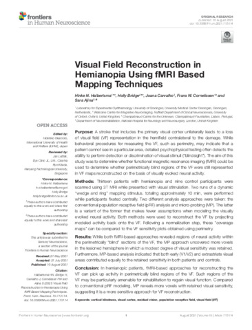 Title: | Visual Field Reconstruction in Hemianopia Using fMRI Based Mapping Techniques |