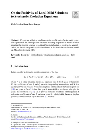 | Keywords: | Positivity, Mild solutions, Stochastic evolution equations, HJM model. |