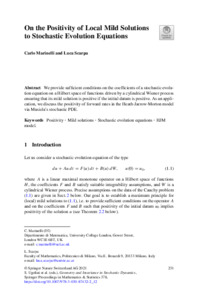 | Title: | On the Positivity of Local Mild Solutions to Stochastic Evolution Equations |