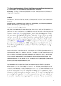 | Title: | Restructuring of the Office for Health Improvement and Disparities is a further step in the wrong direction for tackling health inequalities |