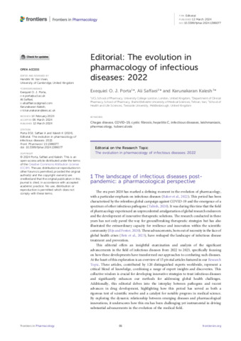 Title: | Editorial: The evolution in pharmacology of infectious diseases: 2022 |