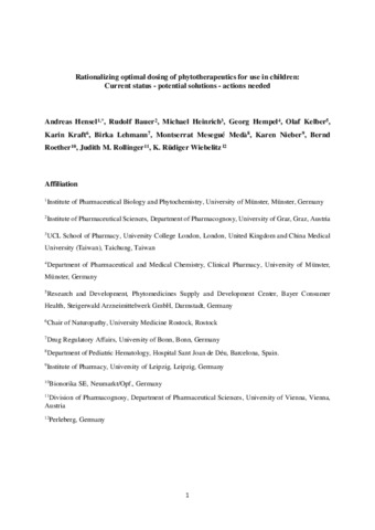 Title: | Rationalising Optimal Dosing of Phytotherapeutics For Use In Children: Current Status – Potential Solutions – Actions Needed |