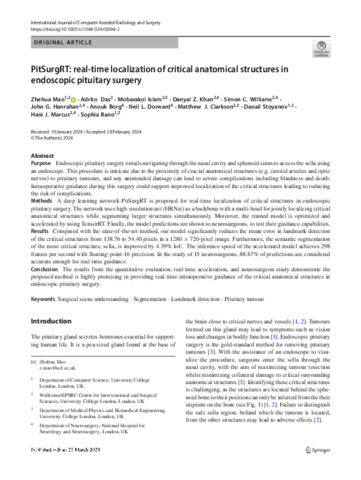 | Title: | PitSurgRT: real-time localization of critical anatomical structures in endoscopic pituitary surgery |