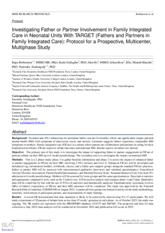 | Title: | Investigating Father or Partner Involvement in Family Integrated Care in Neonatal Units: Protocol for a Prospective, Multicenter, Multiphase Study |