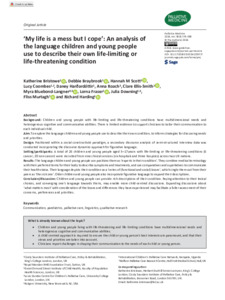 Title: | 'My life is a mess but I cope': An analysis of the language children and young people use to describe their own life-limiting or life-threatening condition |
