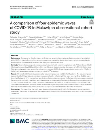 A comparison of four epidemic waves of COVID-19 in Malawi; an observational cohort study.pdf - Accepted Version Download (1MB) | Preview |