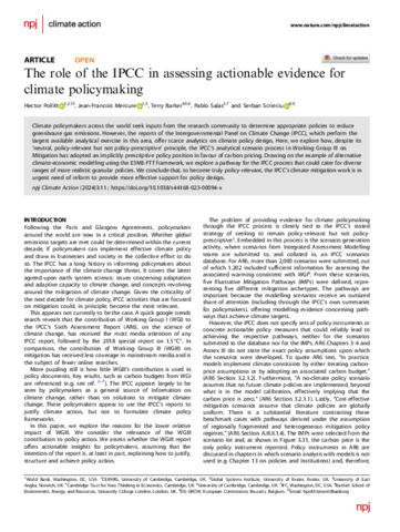 | Title: | The role of the IPCC in assessing actionable evidence for climate policymaking |