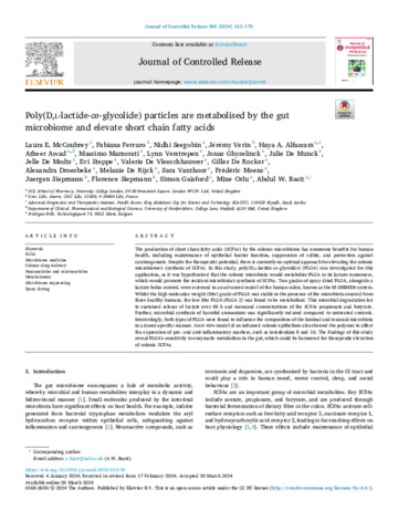 Title: | Poly(D,L-lactide-co-glycolide) particles are metabolised by the gut microbiome and elevate short chain fatty acids |