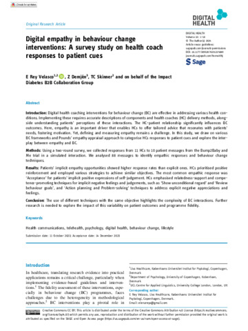 Title: | Digital empathy in behaviour change interventions: A survey study on health coach responses to patient cues |