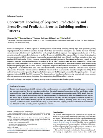| Title: | Concurrent Encoding of Sequence Predictability and Event-Evoked Prediction Error in Unfolding Auditory Patterns |