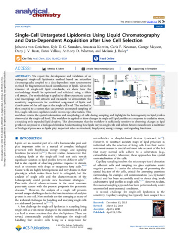 Title: | Untargeted single-cell lipidomics using liquid chromatography and data-dependent acquisition after live cell selection |