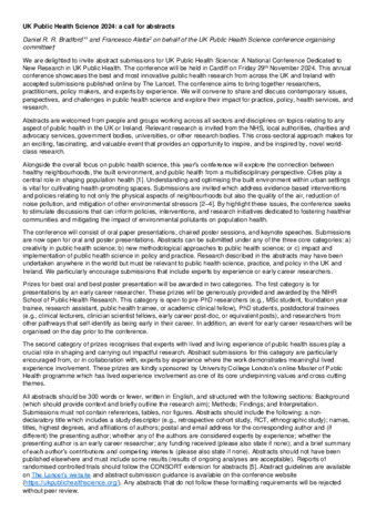 | Title: | UK Public Health Science 2024: a call for abstracts |