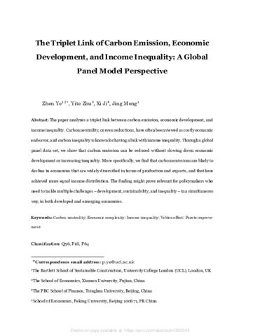 The Triplet Link of Carbon Emission, Economic Development, and Income Inequality: A Global Panel Model Perspective.