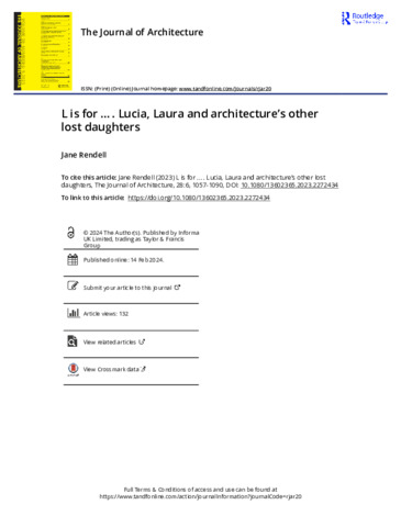 Title: | L is for … . Lucia, Laura and architecture’s other lost daughters |