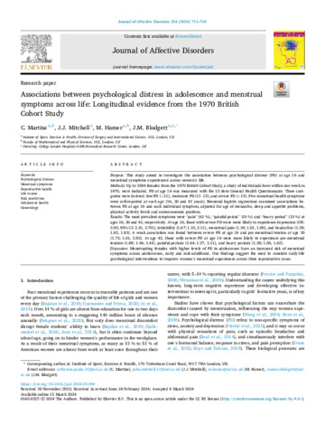 Associations between psychological distress in adolescence and menstrual symptoms across life: Longitudinal evidence from the 1970 British Cohort Study.