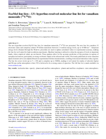 Title: | ExoMol line lists – LV: hyperfine-resolved molecular line list for vanadium monoxide (51V16O) |