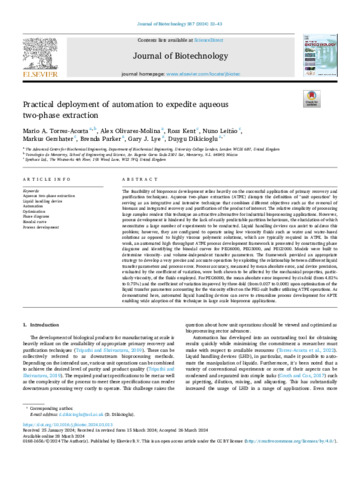 | Title: | Practical Deployment of Automation to Expedite Aqueous Two-Phase Extraction |