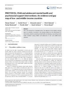 Title: | PROTOCOL: Child and adolescent mental health and psychosocial support interventions: An evidence and gap map of low- and middle-income countries |