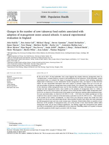 Title: | Changes in the number of new takeaway food outlets associated with adoption of management zones around schools: A natural experimental evaluation in England |