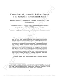 | Title: | Who Needs Security in a Crisis? Evidence from an In-the-Field Choice Experiment in Lebanon |
