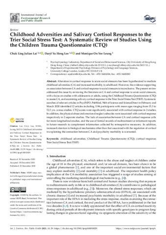 | Title: | Childhood adversities and salivary cortisol responses to the trier social stress test: A systematic review of studies using the children trauma questionnaire (CTQ) |