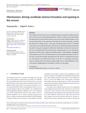 Title: | Mechanisms driving vestibular lamina formation and opening in the mouse |