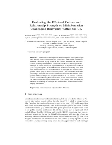 Title: | Evaluating the Effects of Culture and Relationship Strength on Misinformation Challenging Behaviours Within the UK |