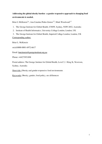 | Title: | Addressing the global obesity burden – a gender responsive approach to changing food environments is needed |