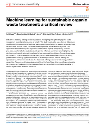 Title: | Machine learning for sustainable organic waste treatment: a critical review |
