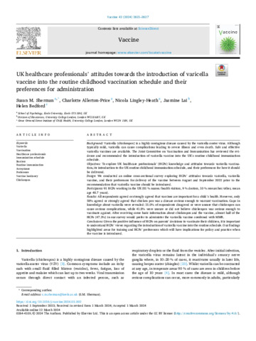 | Title: | UK healthcare professionals’ attitudes towards the introduction of varicella vaccine into the routine childhood vaccination schedule and their preferences for administration |