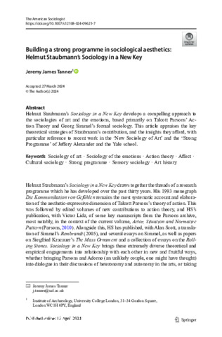 Title: | Building a strong programme in sociological aesthetics: Helmut Staubmann’s Sociology in a New Key |