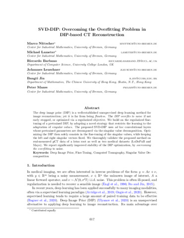 SVD-DIP: Overcoming the Overfitting Problem in DIP-based CT Reconstruction.