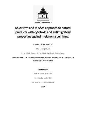 An in vitro and in silico approach to natural products with cytotoxic and antimigratory properties against melanoma cell lines.