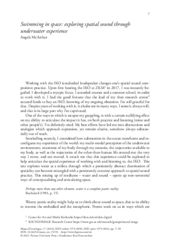 Title: | Swimming in space: exploring spatial sound through underwater experience |