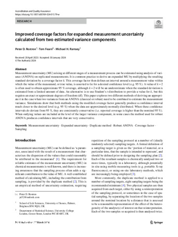 Title: | Improved coverage factors for expanded measurement uncertainty calculated from two estimated variance components |