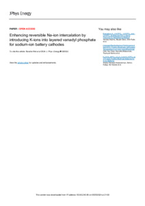 Title: | Enhancing reversible Na-ion intercalation by introducing K-ions into layered vanadyl phosphate for sodium-ion battery cathodes |