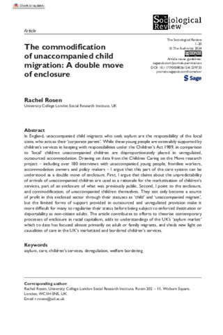 rosen-2024-the-commodification-of-unaccompanied-child-migration-a-double-move-of-enclosure.pdf - Published Version Download (152kB) | Preview  |