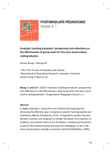 Title: | Graduate Teaching Assistants’ perspectives and reflections on the effectiveness of group work for first-year social science undergraduates |