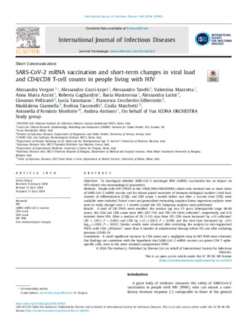 Title: | SARS-CoV-2 mRNA vaccination and short-term changes in viral load and CD4/CD8 T-cell counts in people living with HIV |