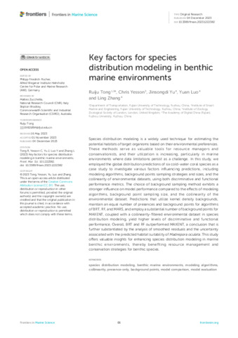 | Keywords: | species distribution modeling, benthic marine environments, modeling algorithms, collinearity, presence-only, background points, model comparison, model evaluation |